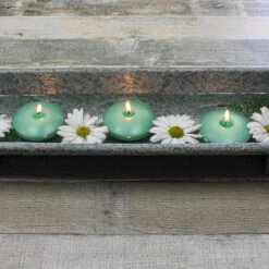 This flat bottom terrarium dish measures 8″ wide x 3″ tall. Candles and accessories sold separately. Â