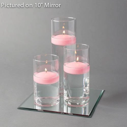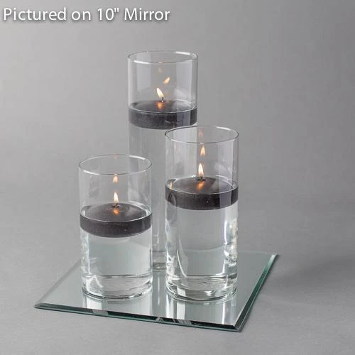 Complete with three classic and elegant Cylinder Vases, three smooth-sided, hand-poured Floating Candles, and one 1/8″ thick beveled-edge Square Mirror – your table centerpiece is ready to go! Simply put the vases on the mirror, add water, and place the candle atop. Once illuminated, the twinkling candlelight shines through the crystal clear glass vases and off of the beautifully reflective mirror to achieve a look that you and your guests will love!