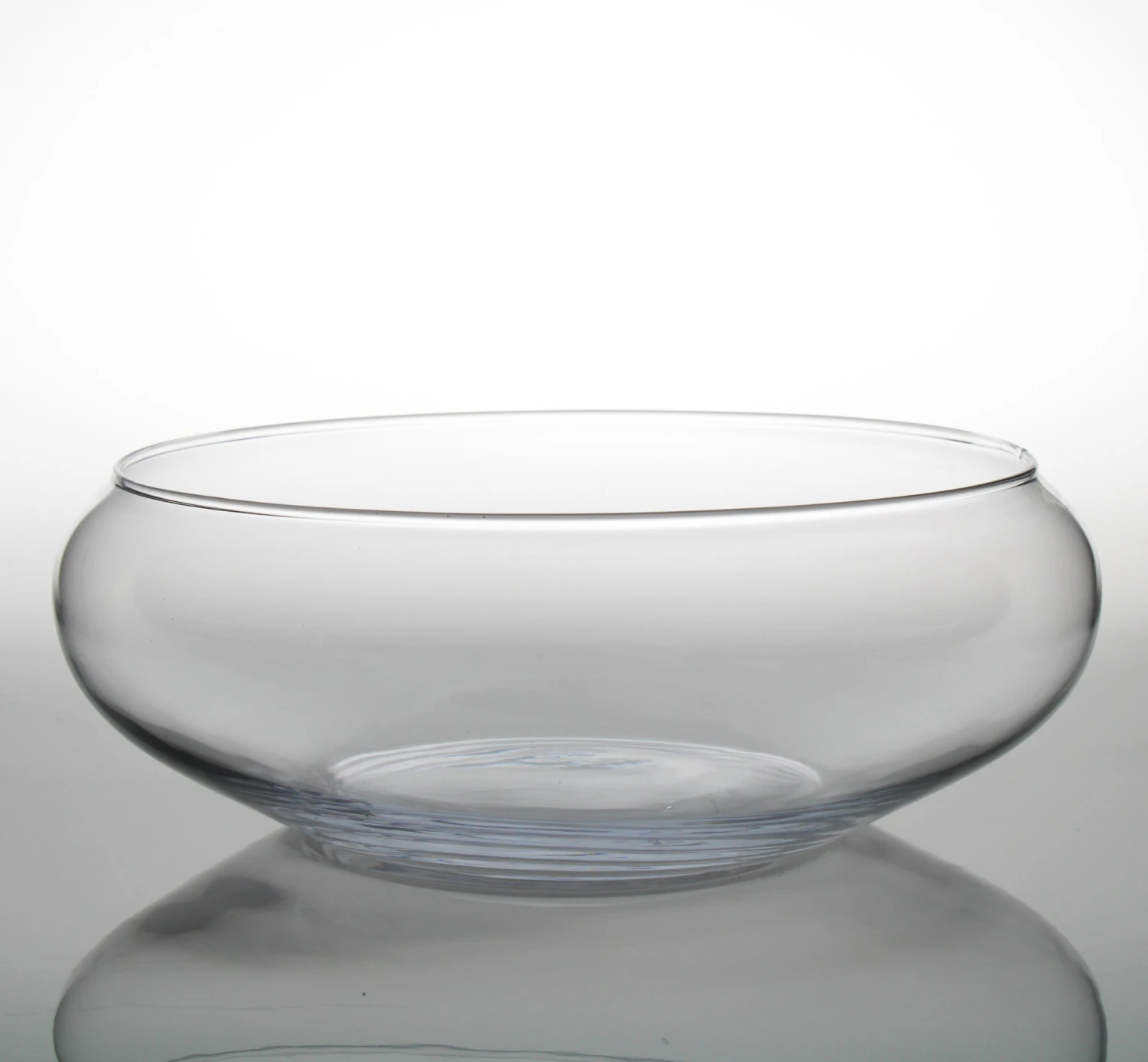 This crystal clear glass floating candle bowl is 12″ at the widest point and 4″ tall. The opening is 8.75″.