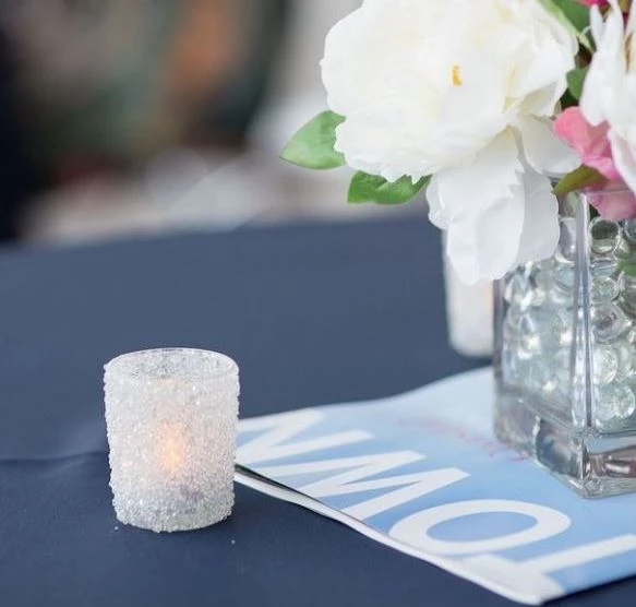 This beautifully sparkly holder will WOW every time! This votive and tealight candle holder is covered in finely crushed glass that perfectly displays and captures surrounding light. The twinkle and shimmer that this holder offers adds a festive touch to any space. Fill with votive candles, tealight candles or LED tealight options and the glow will delight guests. This votive holder is perfect for Weddings, Parties, Holidays, and Home Décor!