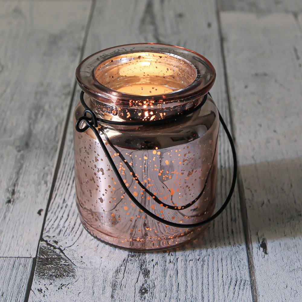 These fabulous hanging mercury glass holders can be just the right touch for your home or event! These thick glass vessels features a reflective dappled metallic finish, elegant shape, and brushed black metal handle. When using with our Richland Tealight or Votive Candles, the shimmer and glow through the speckled finish will brighten any spot! Perfect for weddings, events, and home décor!