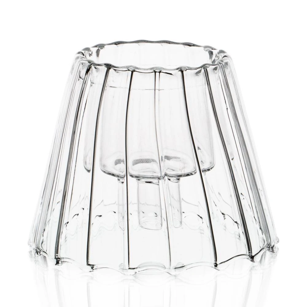 Intrigue with Inza! This dainty glass wine bottle chandelier is the absolute perfect addition to any table setting. Simple yet elegant! The lamp shade shape complete with a safe space for your tealight candle to nestle inside provides the most beautiful glow. The glass boasts a lovely lined design complete with a finished edge. When placed atop your favorite wine bottle the ambiance is simply perfect. The wine bottle glass insert easily fits into the opening of wine bottles of choice and sits flat. Inza makes a lovely addition to home décor, event design and centerpieces. Pair with our Richland tealight candles to complete your flawless look.