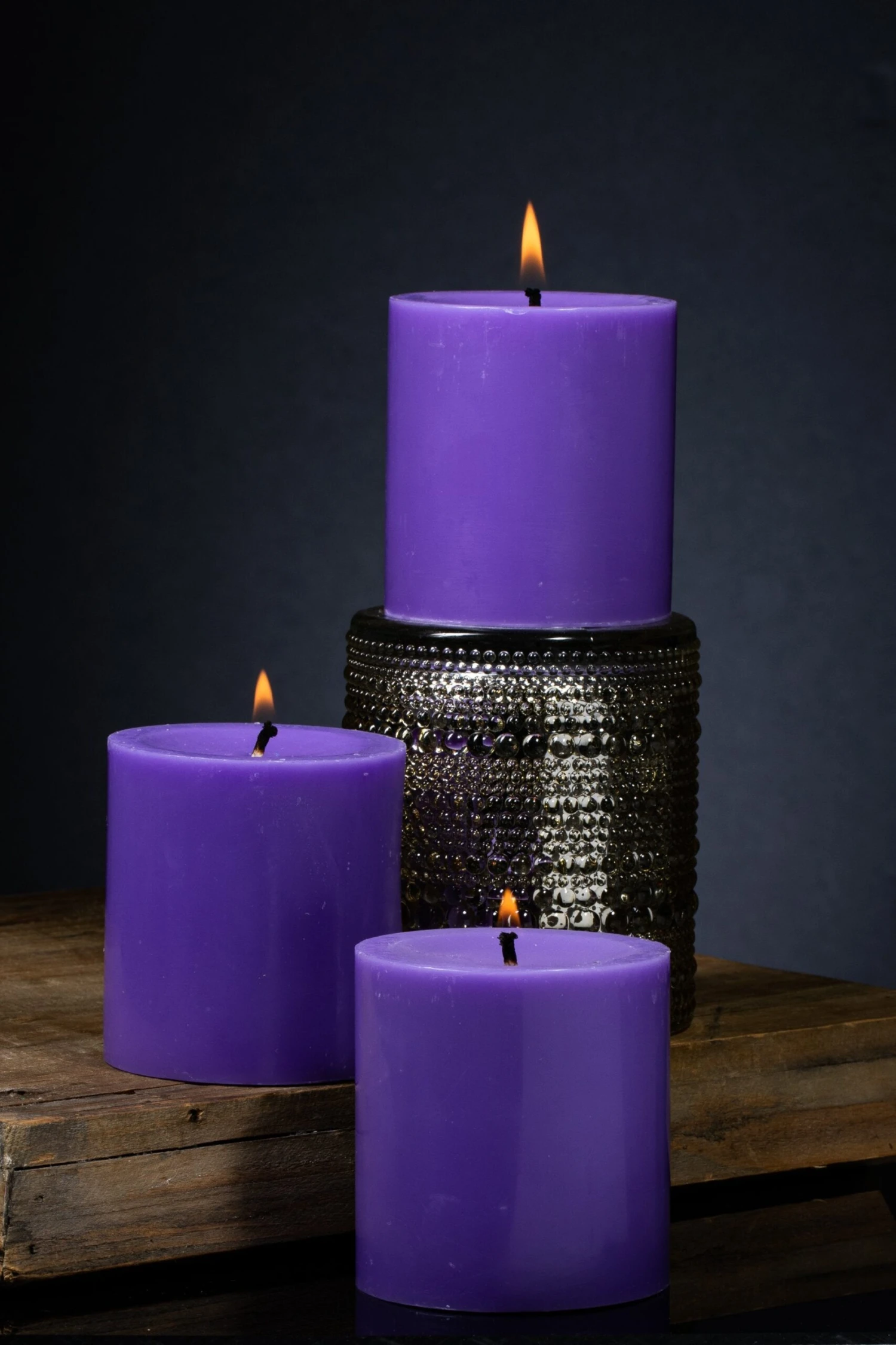 • (24) Richland® 3″x3″ Pillar Candles Lavender