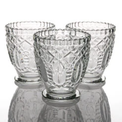 Regal & Romantic! This beautiful thick glass textured votive holder with a beaded edge is the answer to elevating your décor. The raised textured facets of the glass beckon the feel of jewels. With these many angles and shapes in the design, candle light dances about and creates its own special light show. This holder is glamorous yet classic; making it an excellent choice to upgrade centerpieces and displays for Weddings, Events, Restaurants, Home Décor, and more!