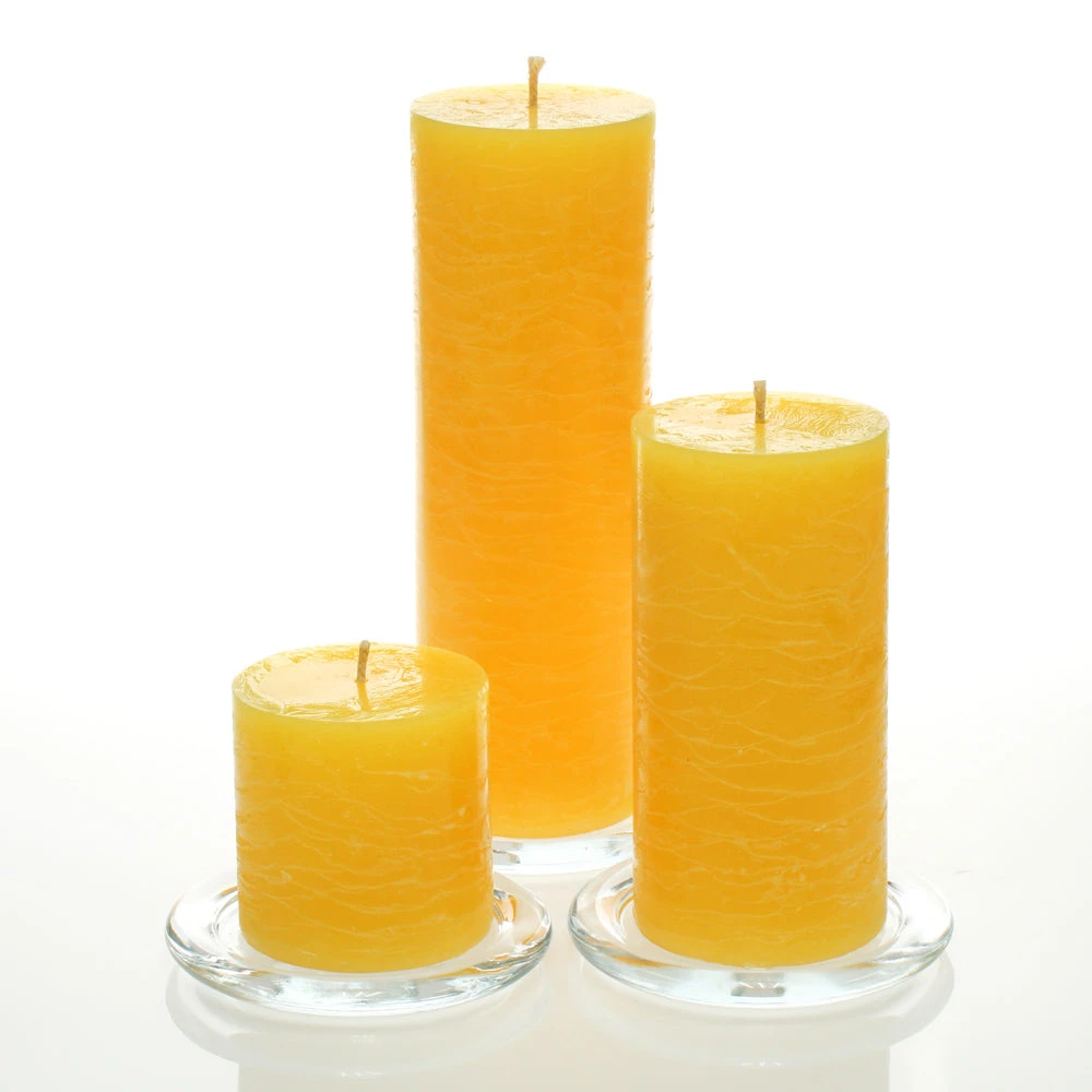 -  (12 of each) Richland® 3″x3″ / 3″x6″ / 3″x9″ Rustic Pillar Candles Yellow