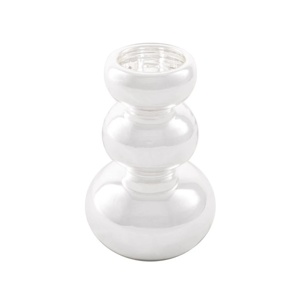 Metallic and Mod! This bubble shaped glass tealight holder is a gorgeous mod-inspired accent for your décor. The whimsical design and reflective mirrored finish of this piece makes an impression and creates visual interest in centerpieces and displays. Just add our Richland Tealight Candles in the convenient slot at the top; and and admire the glow! Both our real and LED tealights work for this holder. Great for events and home décor.