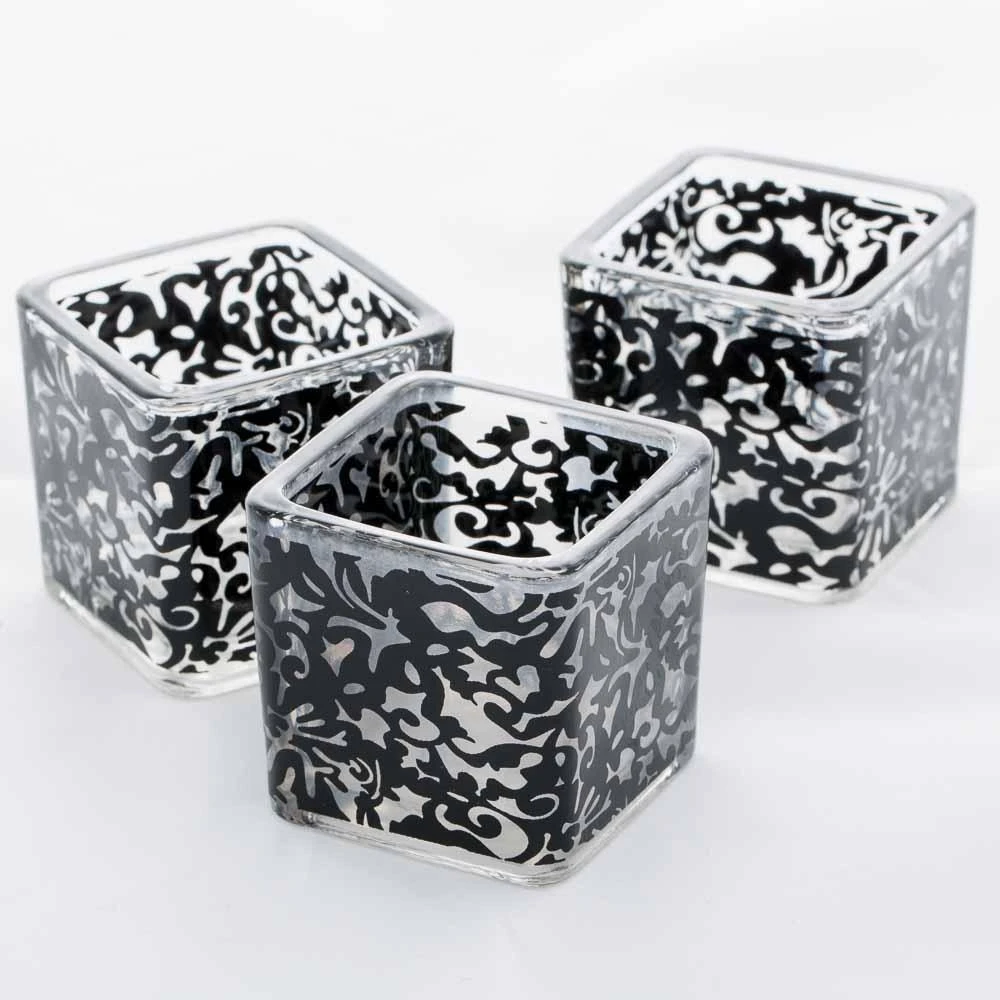 Making an intriguing statement has never been easier! Incorporate this clear glass square votive holder with added black lace pattern decal to any setting for instant sophistication. Add our Richland Votive or Tealight Candles to complete your look. Candlelight dances about through the lace design to create a special ambiance that is well-suited for restaurants, weddings, special events, and home décor!