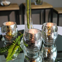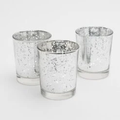 Fill this mirror effect vase with white bouquets of flowers or candles to create amazing eye-catching arrangements. The sparkle of candlelight through the dappled coating will illuminate your wedding, event, or home décor. Set the stage for a spectacular display of silvery, reflective light with this piece. This Silver Mercury Glass Cube Vase and Candle Holder 6″ is textured in a square pattern and features a speckled mercury finish that accents any modern environment.Â